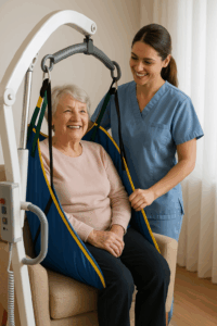Transparent Communication– Host friendly “demo” sessions where residents and families can see the lifts in action, ask questions, and even try sitting in a sling themselves. When people understand that today’s lifts are designed for comfort – with padded slings, smooth hydraulics, and adjustable positioning – they’re much more open to using them.