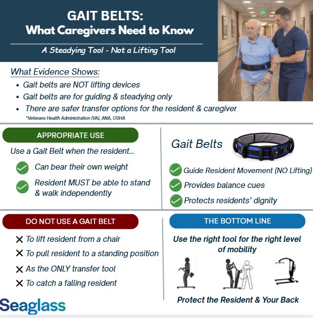 But today, we are learning more about safe patient handling. The real question is not whether gait belts are good or bad. The question is: When are they truly helpful — and when should we use something safer? Understanding the difference helps protect both the resident and your body.